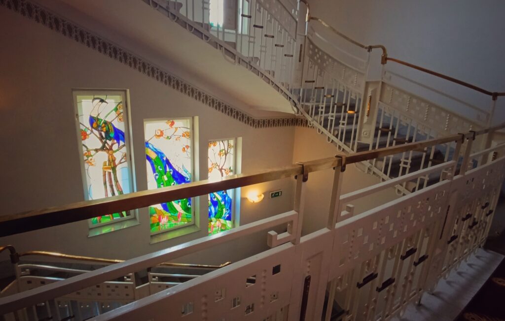 W jego wnętrzach znajduje się prawdziwy skarb – oryginalny obraz Alfonsa Muchy, podarowany przez artystę w podziękowaniu za udaną kurację jego córki. Dzieło monumentalne, pełne detali i kobiecych sylwetek. W 2000 roku zyskało dodatkową sławę, kiedy… zniknęło. Ktoś próbował je ukraść, używając do tego… nożyka do masła, a potem sprzedać dyskretnie… przez Internet. Choć historia brzmi nieco absurdalnie, naprawdę się wydarzyła. Na szczęście obraz odzyskano i dziś znów cieszy oczy hotelowych gości.
